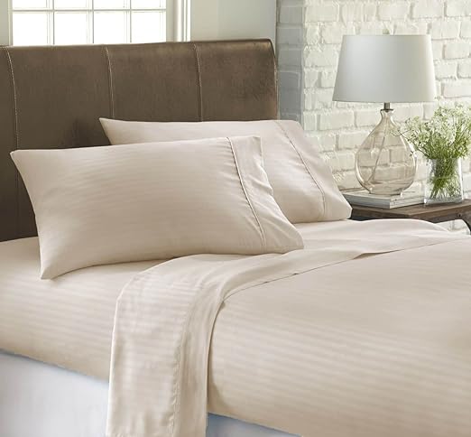 ienjoy Home Embossed 4 Piece Sheet Set, Queen, Stripe Cream