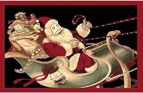Mybecca Christmas Rug Holiday Décor Santa on Sled Area Rug Approximately: 3’4″ x 4’6″ Woven for Home Dining Room Living Room