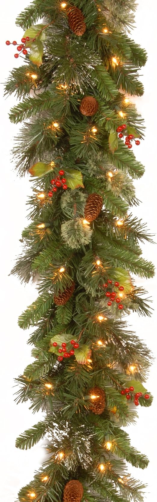 National Tree Company Pre-Lit Artificial Christmas Garland, Green, Wintry Pine, White Lights, Decorated with Pine Cones, Berry Clusters, Plug In, Christmas Collection, 9 Feet