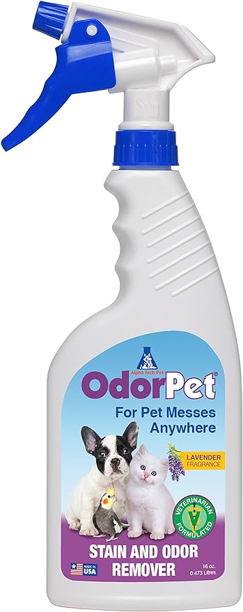 OdorPet Stain & Odor Eliminator Enzyme Cleaner for Pet Odor & Stain Remover for Dogs and Cat Urine Vomit Spot Carpet Cleaner Small Animal Odor Remover Lavender 16oz
